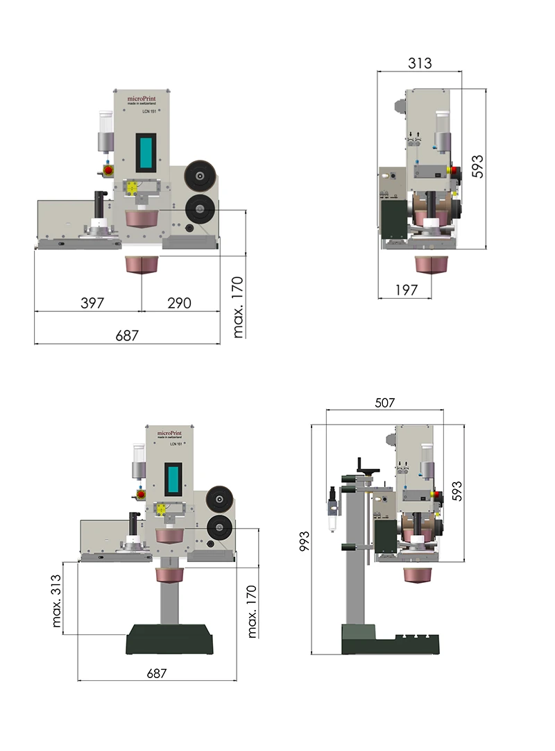 Die LCN-Linie druckt einfarbig und arbeitet mit geschlossenem Farbgeber. Die maximale Topfgröße beträgt 140 mm im Durchmesser. Bei Bedarf ist auch ein pneumatisch verstärkter Topfhalter verfügbar. Mit den optionalen microPrint Viskomaten wird zudem die Viskosität der Farbe selbstständig reguliert. Eine Spezialvariante bietet den Einsatz von bis zu 3 Töpfen, um so das Bedrucken mehrerer Nutzen zeitgleich zu ermöglichen.