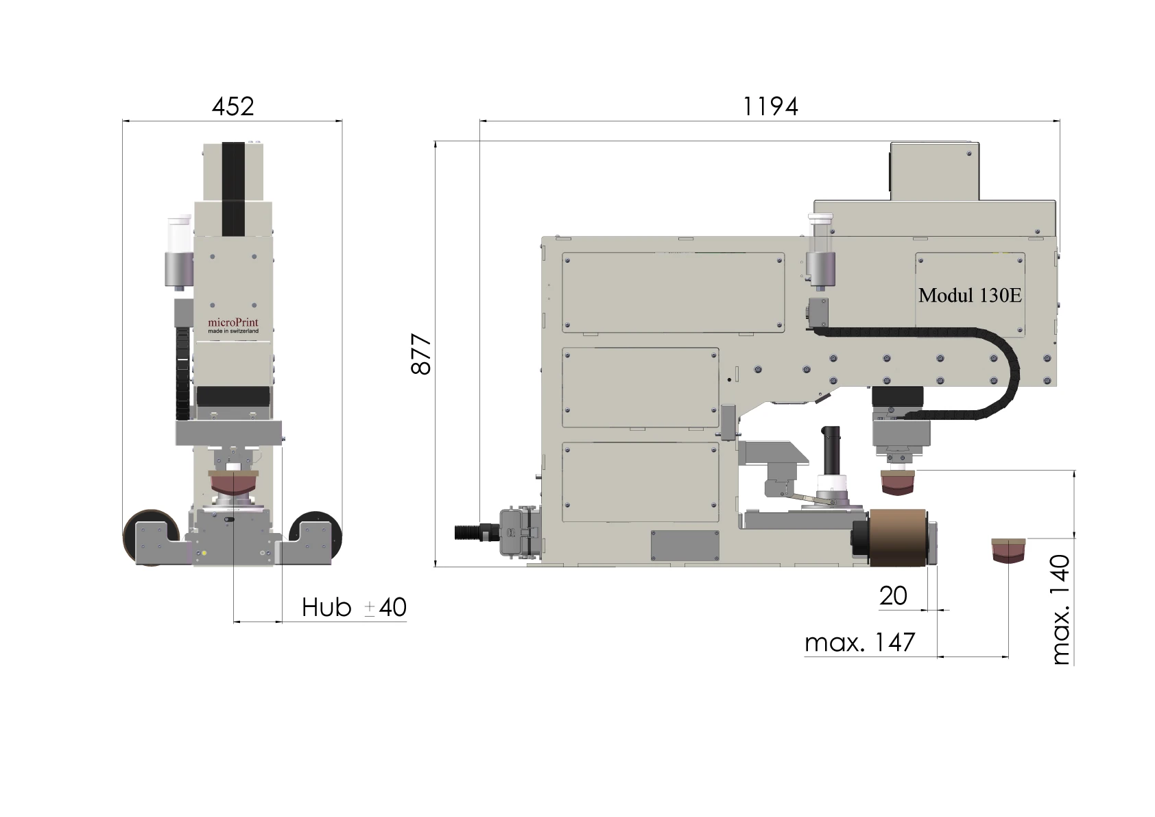 Die Modul-Linie wird meist in Anlagen eingesetzt. Sie eignet sich für Teile mit vielen an unterschiedlichen Positionen gedruckten Bildern, wie auch für den Druck unterschiedlicher Varianten in einem Druckjob. Für Anwendungen mit kurzen Zykluszeiten und hoher Präzision. Mehrere Einheiten an einem Transportsystem können parallel sehr hohe Stückzahlen mehrfarbig bedrucken. Durch einen Linearantrieb mit einer Aufnahme in Kombination mit Drehvorrichtung können große und komplexe Teile in einem Ablauf bedruckt werden. Für sensible Druckabläufe (z.B. bei gedruckter Elektronik, lichtdichtem oder transluzenten Druck) empfehlen wir den elektrischen Tamponhub.