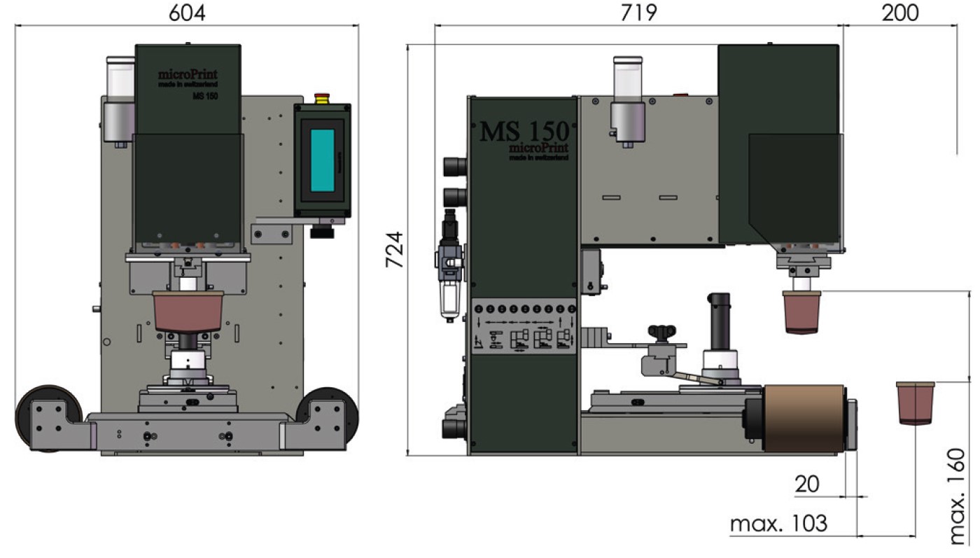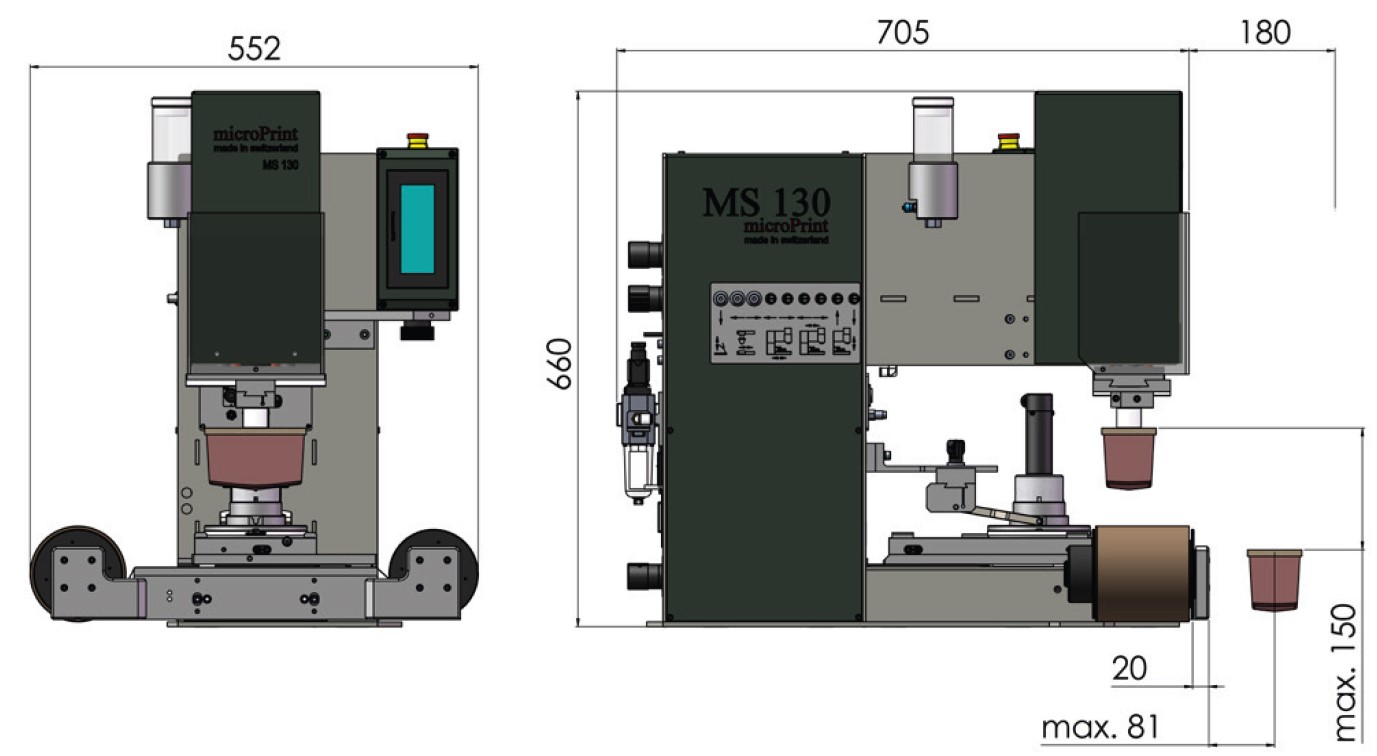 Die MS-Linie steht als Handarbeitsplatz sowie für die Integrationen in Anlagen für einfache wie auch spezielle Druckaufgaben bereit. Dank der internen mechanischen Positionierbarkeit sind die Maschinen in Anlagen ohne einen Kreuztisch einsetzbar. Der autonome Betrieb wird durch Überwachung des Reinigungsbands und dem Einsatz von Viskomaten sichergestellt. Der zurückfahrende Tamponkopf ermöglicht zudem eine leichte Beladung der Maschine durch einen Roboter. Das Druckgut kann elektrisch oder pneumatisch gedreht oder abgerollt werden. Für lange Druckbilder kann ein Ovaltopf oder ein Querrakler eingesetzt werden.