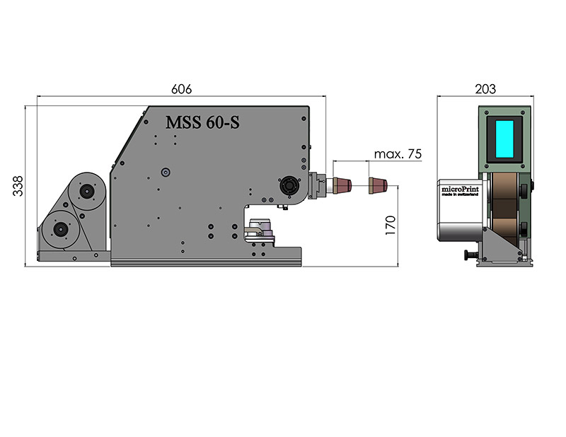 Die MSS-Linie wurde speziell für Anlagen konzipiert, in denen das Druckteil nicht gedreht werden kann und eine horizontale Bedruckung erforderlich ist – zum Beispiel bei Autobremsbelägen, die auf einem  Förderband transportiert werden und präzise auf der Stirnseite bedruckt werden müssen. Im Gegensatz zur Konkurrenz kann die MSS vollständig von der Rückseite aus umgerüstet und bedient werden.
