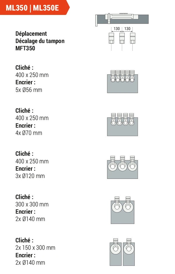 | Image d’impression max. [diamètre en mm] | 46 / 60 / 76 / 110 / 130 / 150 |